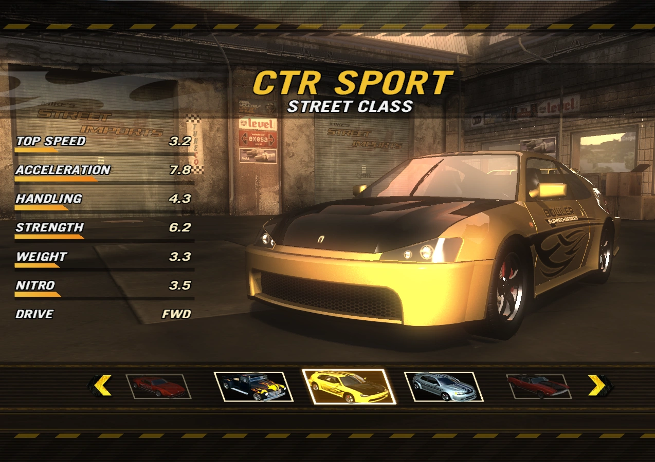 - The CTR Sport resembles fastback vehicles with a bigger engine compared to that of the Chili Pepper, altrough such configuration is rarely used in real life, with the most approximate example being either an engine swapped CRX or a stock Lancer, which this engine closely resembles (MIVEC).